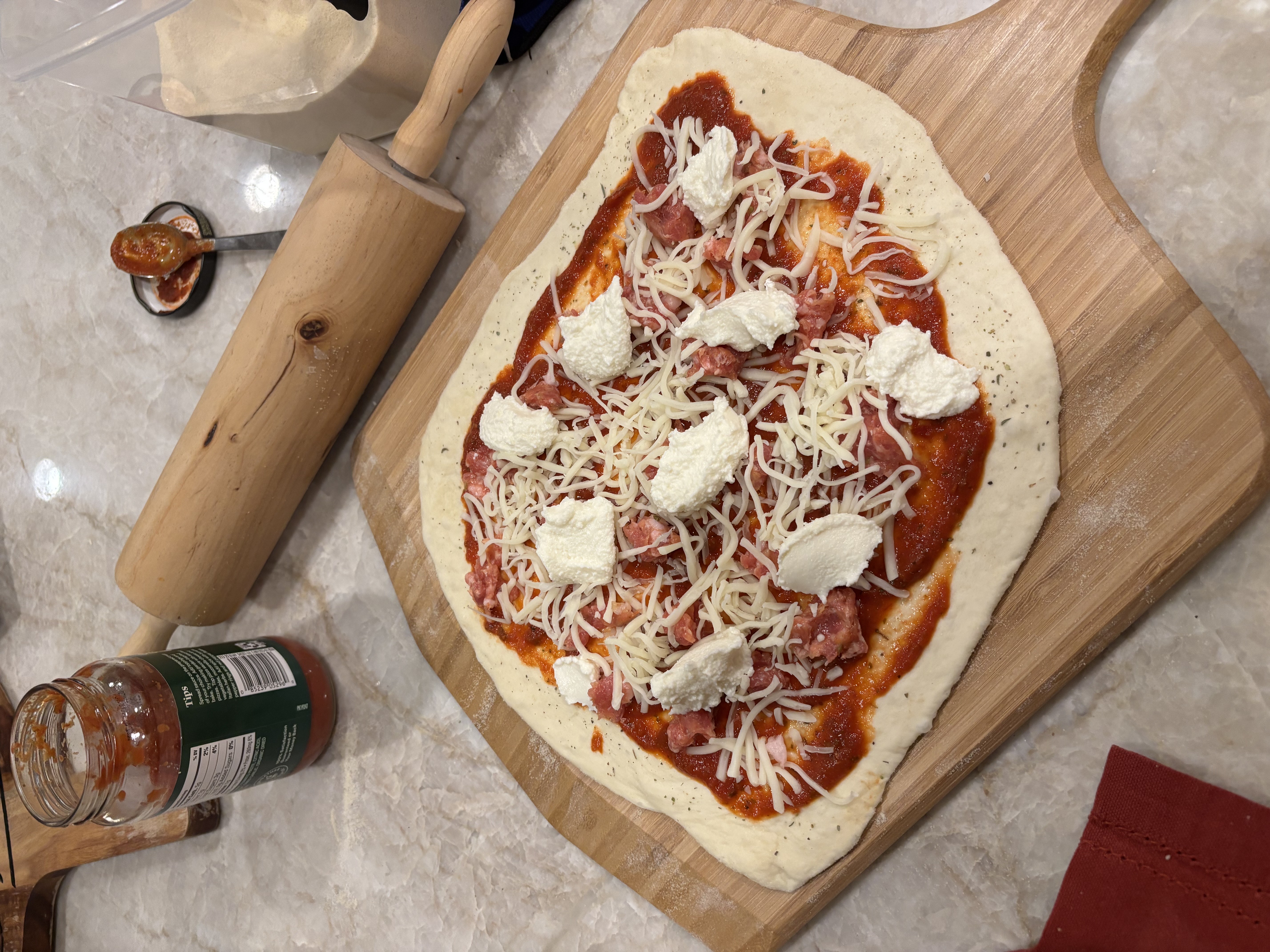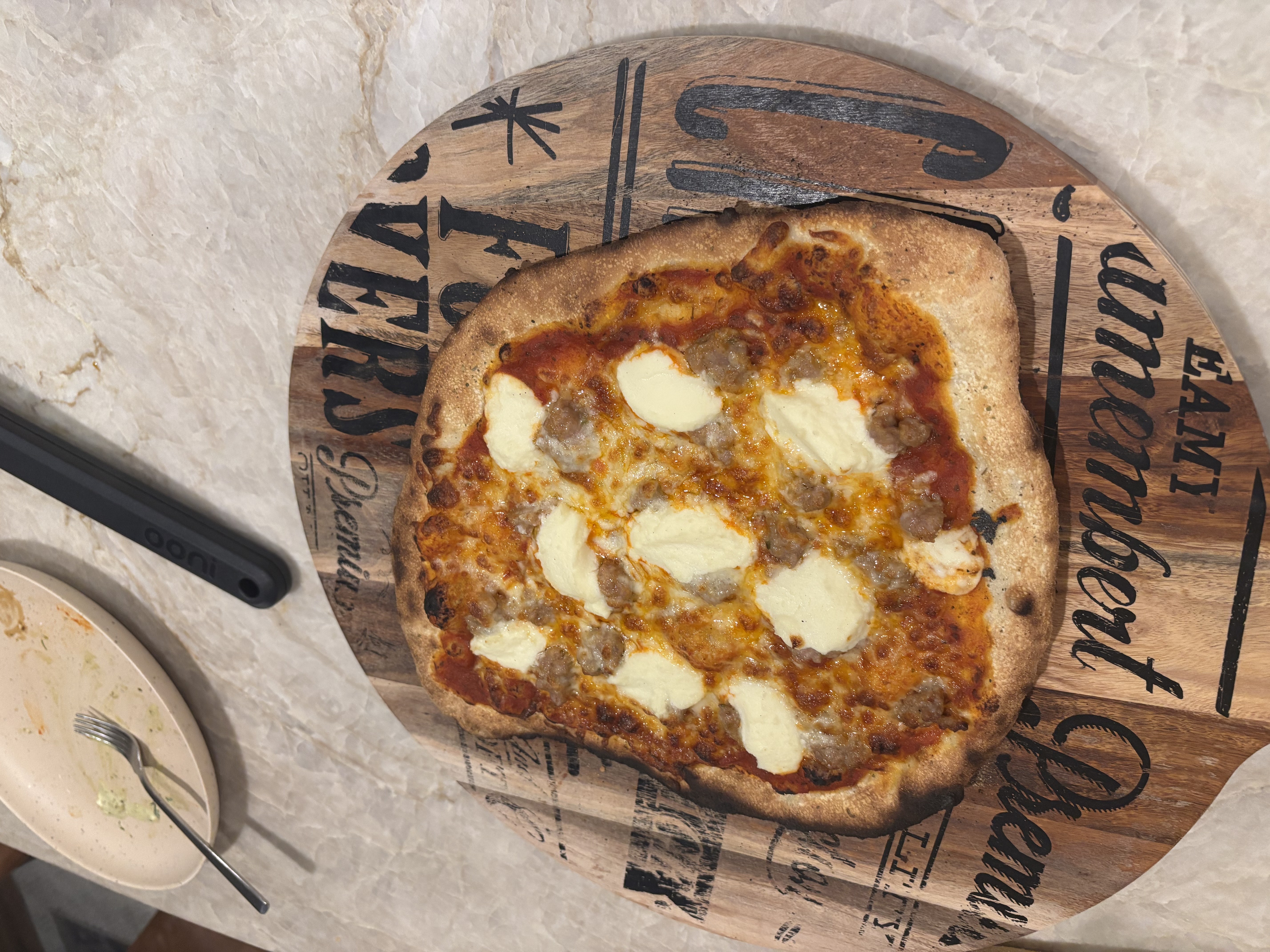 The second pie built on the success of the first but with one crucial addition: Italian sausage. After far too long in our freezer, the sausage finally made its debut, adding a savory, meaty punch to the mozzarella-ricotta-basil trifecta. The result? A pizza that felt like a celebration of indulgence, where every bite offered a perfect balance of creamy, tangy, and spicy.